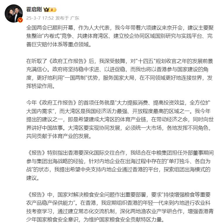 跳水冠军郭晶晶跟霍家霍启刚的结合一直以来都是一段佳话,而这次正值的“两会”也再一次让霍启刚得到了大家的关注。