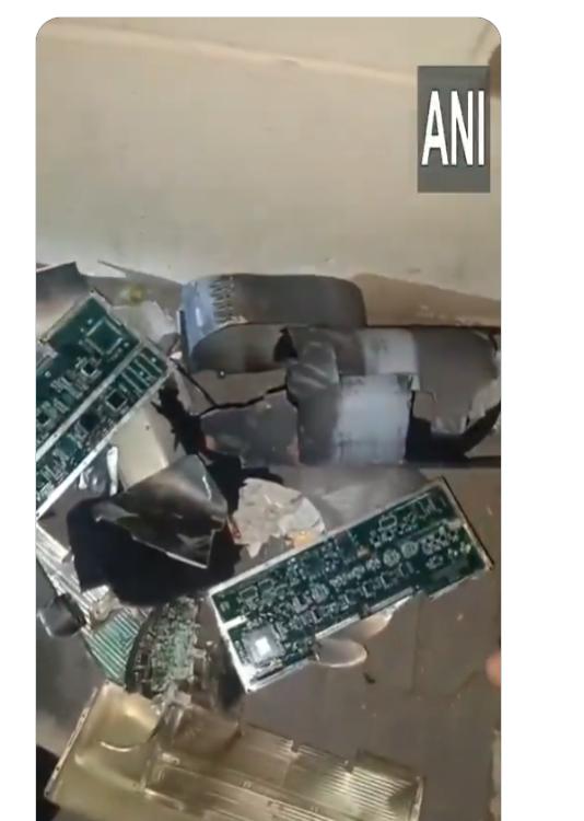 印度贾朗达尔农村地区Kanganiwal村发生爆炸后,一架巴基斯坦无人机的残骸被找到