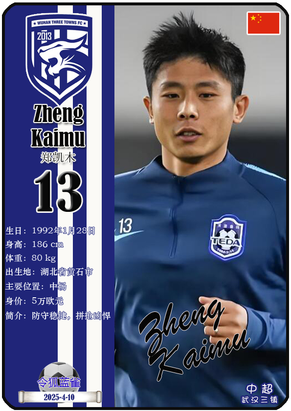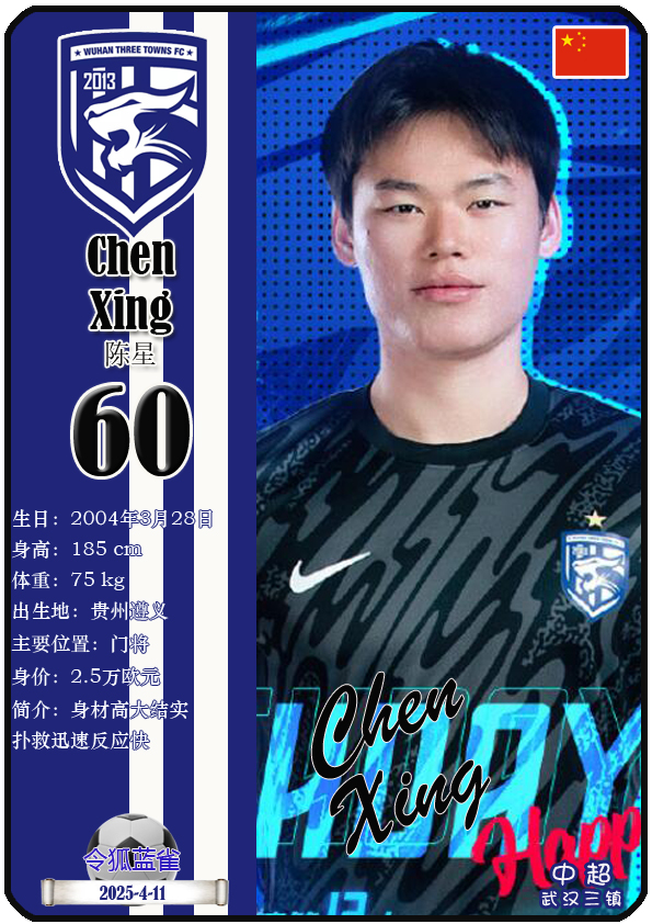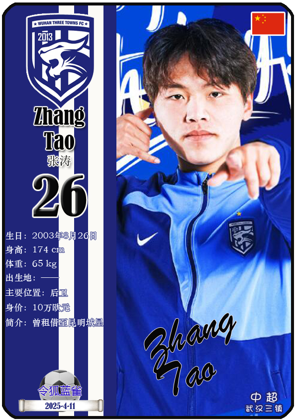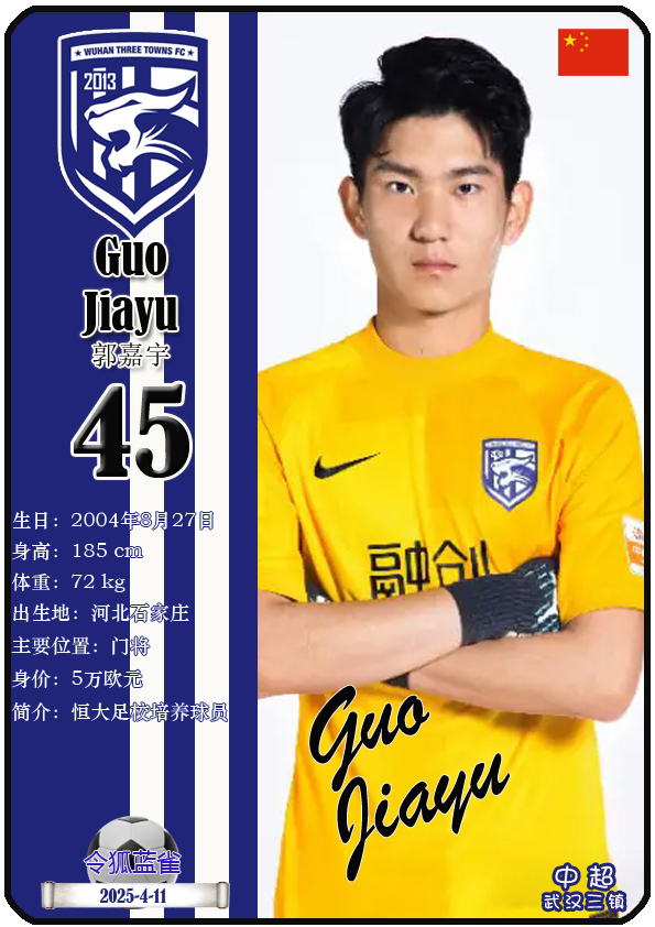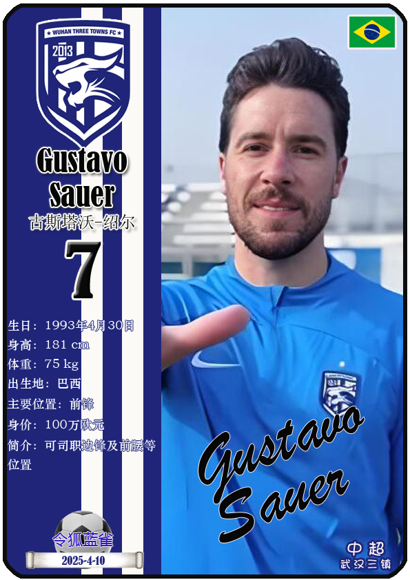 中超武汉三镇足球俱乐部主场是武汉体育中心体育馆,截至2025年4月11日,球队临时教练是邓卓翔,本赛季队内拥有球员古斯塔沃-绍尔、亚历山德鲁-图多列、达兰-门德斯、曼努埃尔-帕拉西奥斯等。本期以球星卡的形式展示截至2025年4月11日武汉三镇足球俱乐部的30名球员(按球衣号码排序):