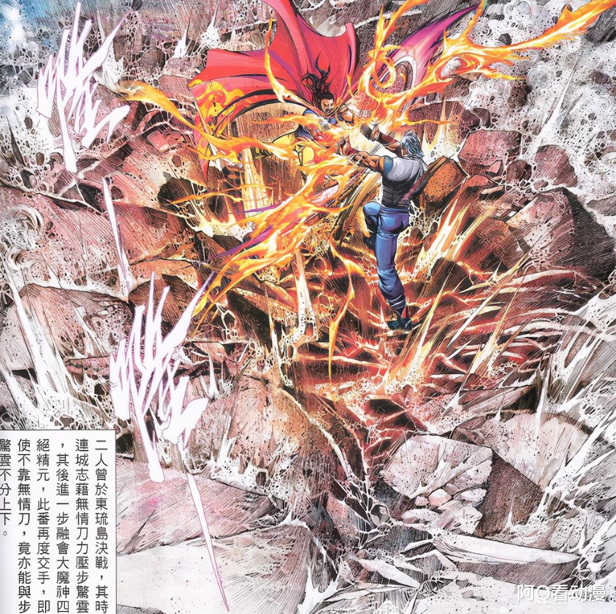 再者,是他的实力被很多人认为“水分太大”。没错,连城志后期很强,赤火神功、无求易决、混天四绝等神功傍身。但仔细一看,他的强大有个致命弱点——严重依赖外物,特别是那把“无情刀”。漫画里明说,一旦没了无情刀,他的战斗力会暴跌好几个档次,别说风云联手,连单挑步惊云都未必能赢。