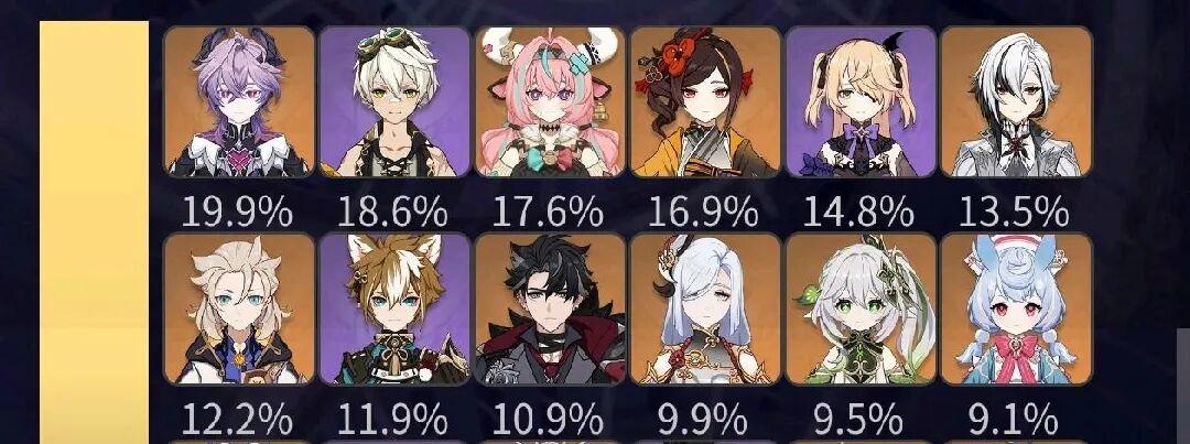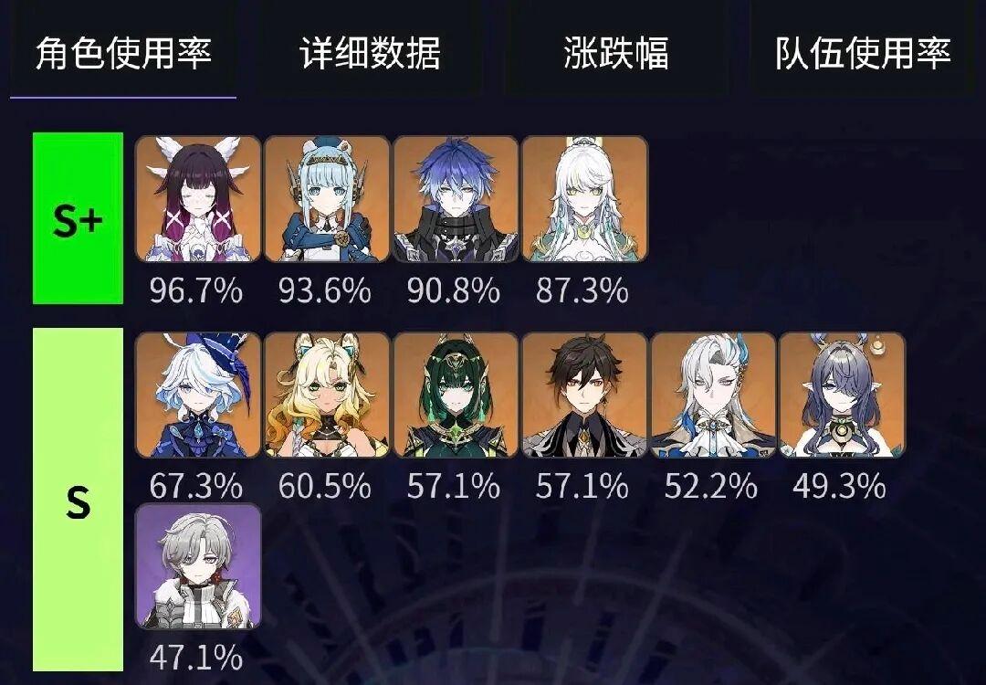 另外就是本期老深渊的角色使用率也已出炉,少女的使用率肯定是排在第一的,没有任何的意外,紧接其后的就是伊涅芙,菲林斯和兹白,这三个角色也确实是这一期深渊最好用的三个角色,分别用在上半和下半。