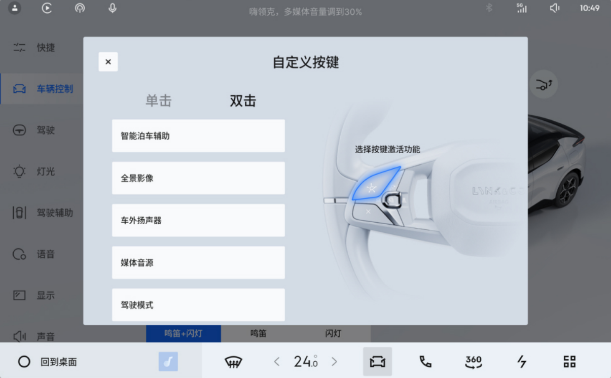 此外,领克Z20在液晶仪表显示中新增导航红绿灯倒计时与电量百分比,HUD抬头显示增加巡航红绿灯倒计时、绿波车速、目的地剩余里程与时间等信息。针对车控车设,优化了RPA泊车辅助功能,方向盘自定义按键新增双击指令设定,支持氛围灯亮度调节,并实现地图导航音量记忆。升级后的系统交互逻辑更加明晰,操作路径更简捷,减少了不必要的步骤;液晶仪表与HUD的显示内容更丰富直观,重要行车信息一览无余,增强了驾驶安全性;车控车设的细节调校则让车辆操控更符合个人使用习惯,实现千人千面的专属体验。