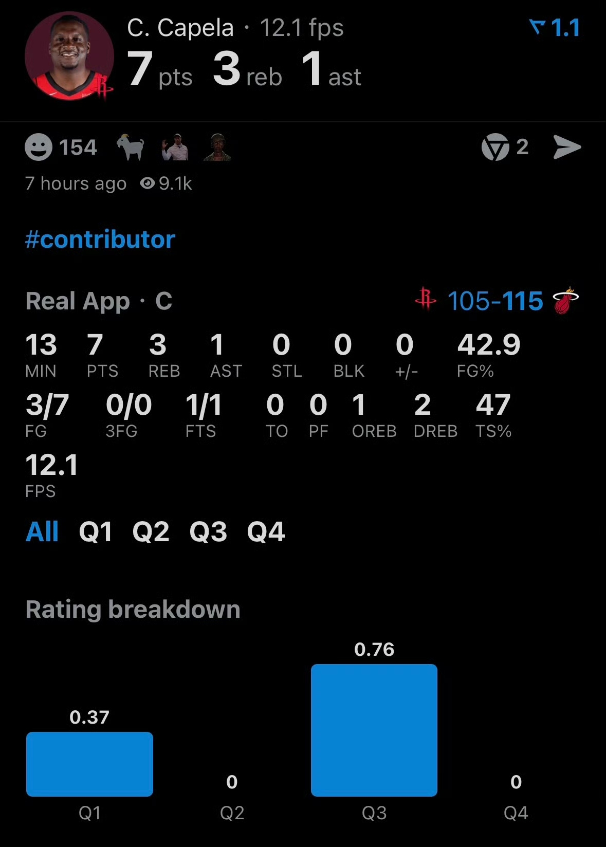 2月28日,艾顿拿到4分10篮板,结果卡佩拉今天对阵热火又砍下7分3篮板,连续两场得分占优。