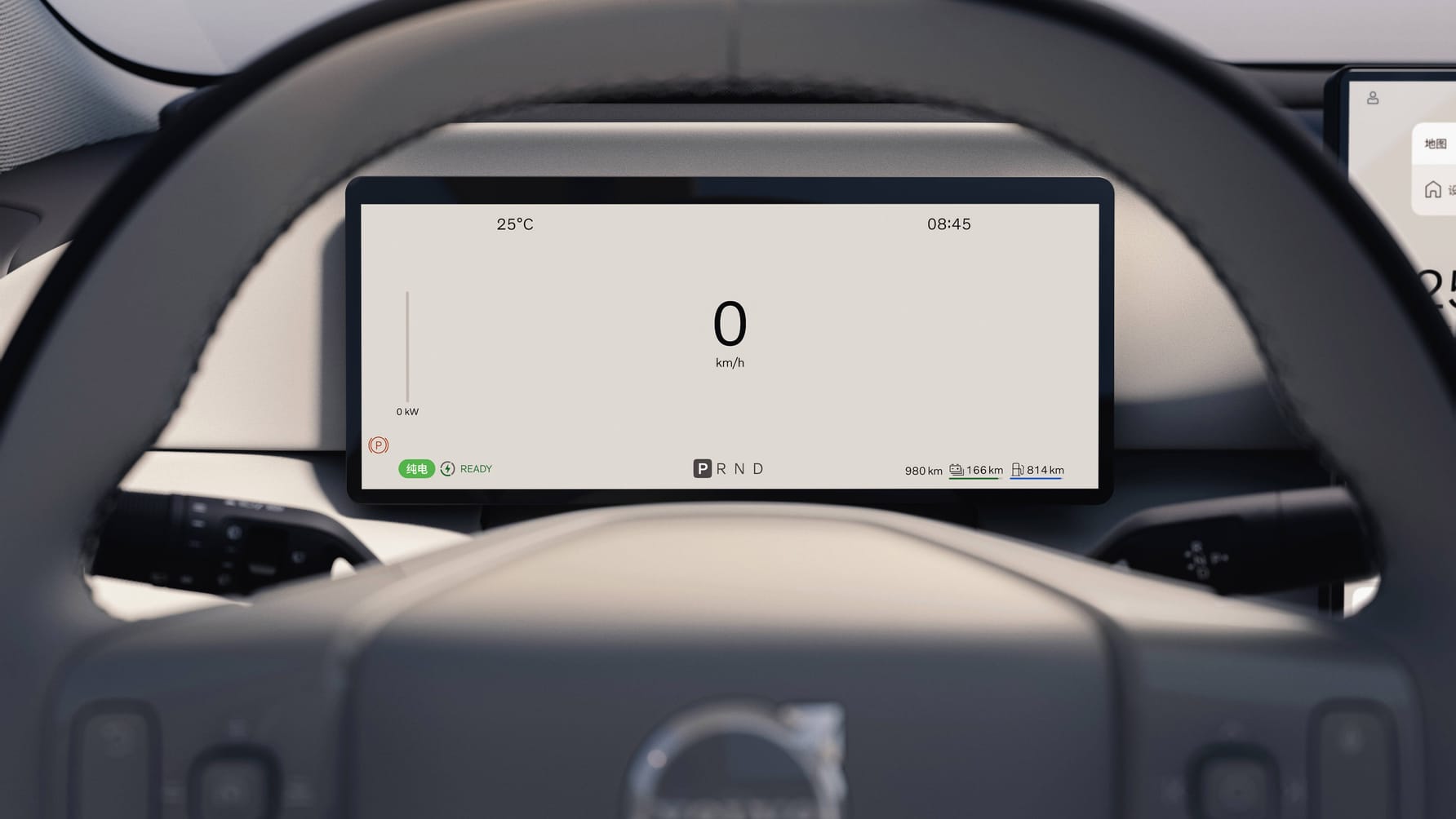 细节方面,新车配备两幅式方向盘,与沃尔沃其他车型截然不同, 座舱内的细节还包括HUD抬头显示,车速等信息以橙色呈现。