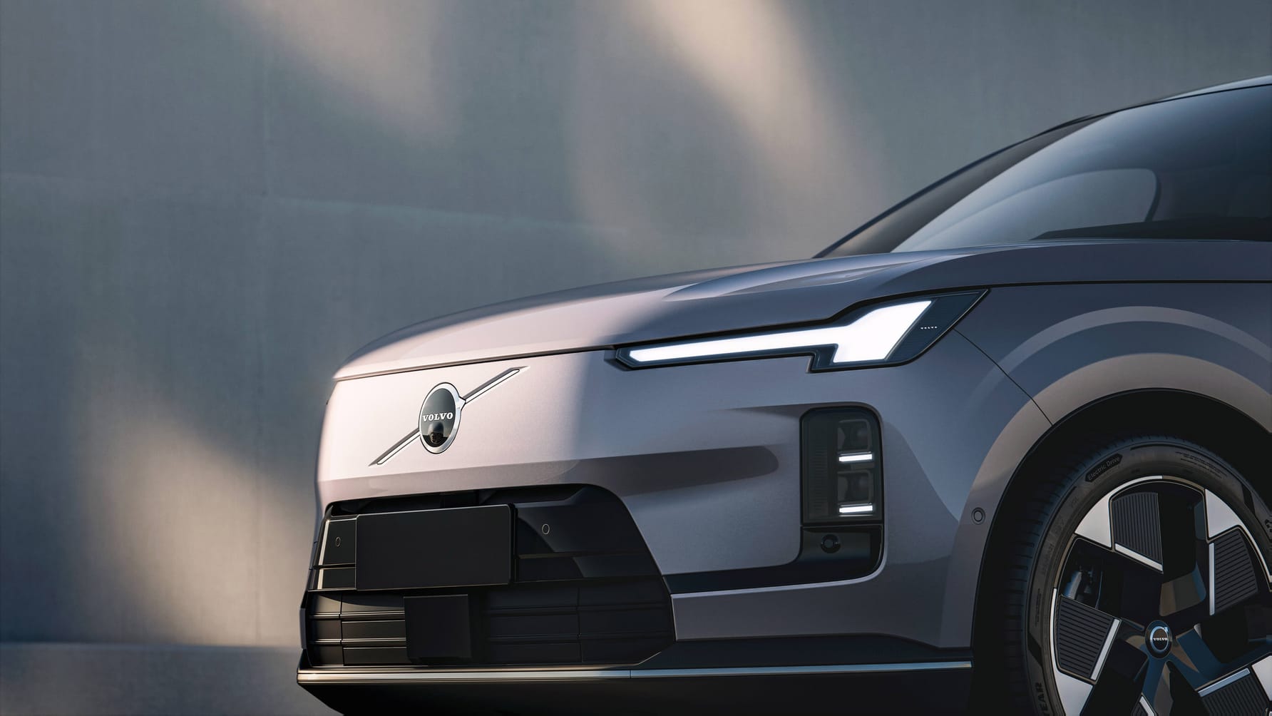 前脸采用标志性的雷神之锤LED大灯,造型锐利且富有层次感,点亮后辨识度拉满,内部灯组细节精致,兼顾照明效果与美学表达;前进气格栅采用封闭式设计,搭配沃尔沃经典的铁标,凸显新能源身份,同时有效降低风阻。