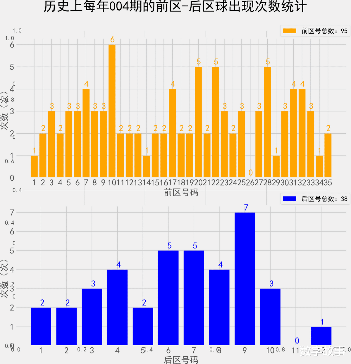 统计每年004期的样本数据: 95个前区号 38个后区号
