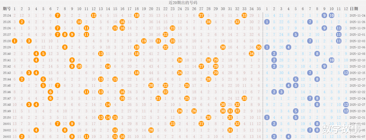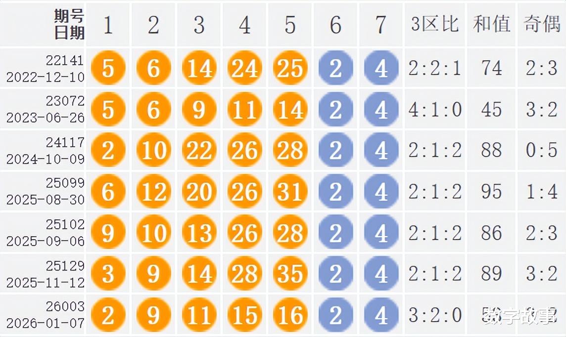 博弈心理,挑战概率: 看近期开奖号码,也可看历史数据统计!【大乐透26004期多角度冷热号】大乐透26004期四维走势图,前后区号统计及冷热号1) 历史同一天:01月10日 (共6期)