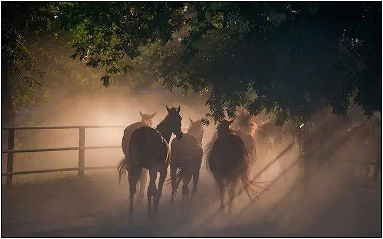 我们在一片朦胧中也能感受到马儿们的快乐。