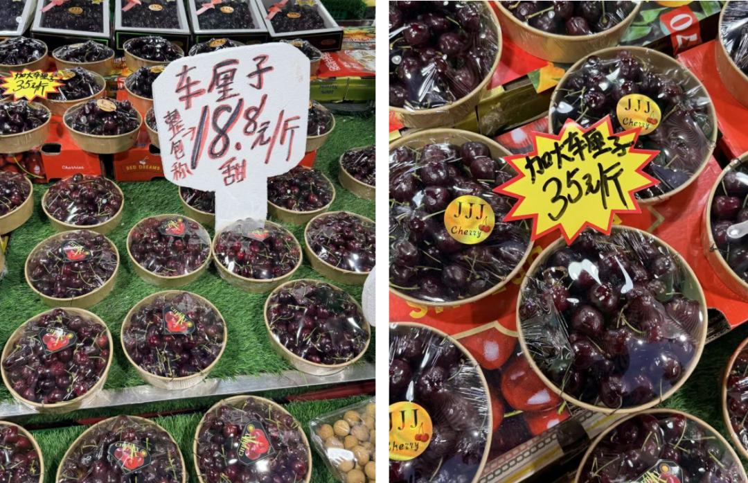 盒马车厘子降价幅度同样显著。5斤装2J智利车厘子,从12月5日的259元/箱(51.8元/斤)降至189元/箱(37.8元/斤),10天降幅达27%;5斤装3J智利车厘子则从12月4日的329元/箱(65.8元/斤)降至229元/箱(51.8元/斤),单箱降价100元。