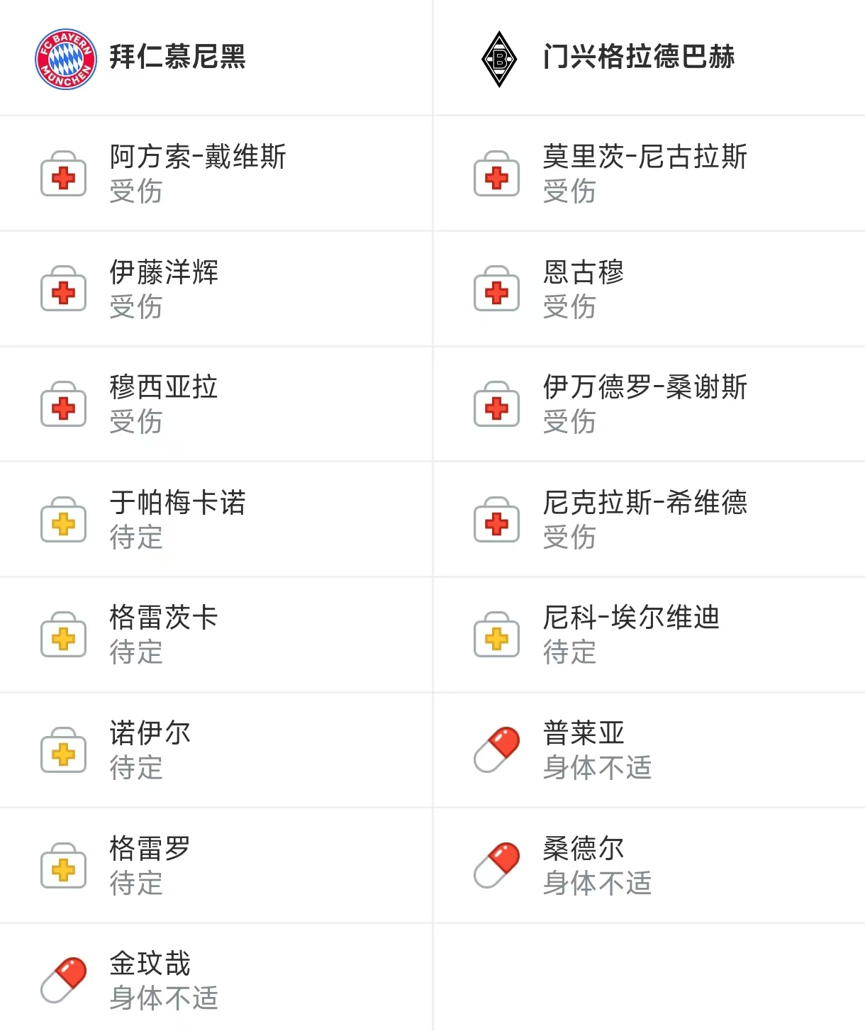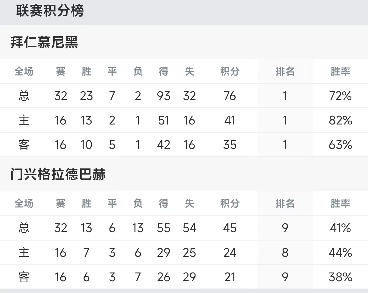 - 战意:联赛目标转向练兵与磨合阵容,为欧冠淘汰赛做准备,相比门兴联赛抢分的迫切性,战意稍显不足。