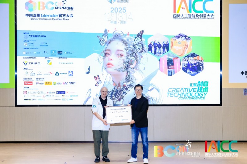 在IAICC大会上,Blender官方正式授予Renderbus瑞云渲染“Blender中国合作方指定云渲染平台”称号并举行授牌仪式。这一认证远超越普通的商业合作,它代表了国际顶级开源组织对瑞云技术能力、服务品质及社区贡献的最高规格认可。