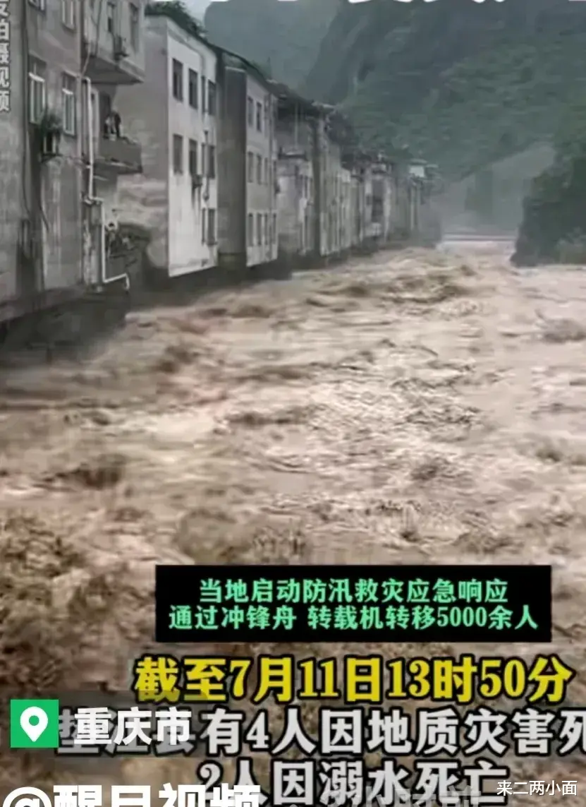 重庆市垫江县遭遇特大暴雨袭击,有4人因地质灾害死亡,2人溺水死亡,强降雨导致山洪爆发,乡镇被淹。