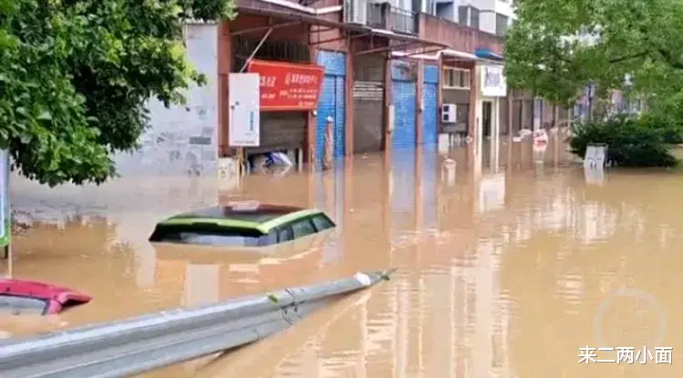 好深的水快到2米了,汽车淹了还剩个顶棚