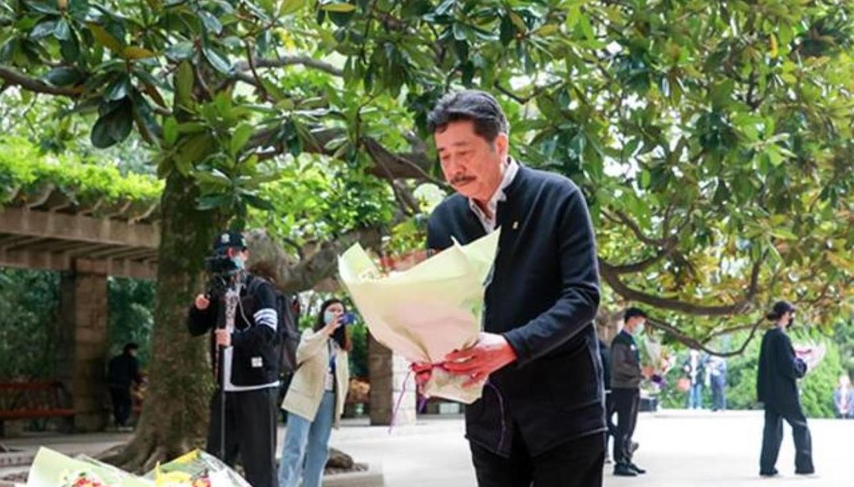 图|鲁迅先生长孙周令飞在上海虹口鲁迅墓前敬献鲜花