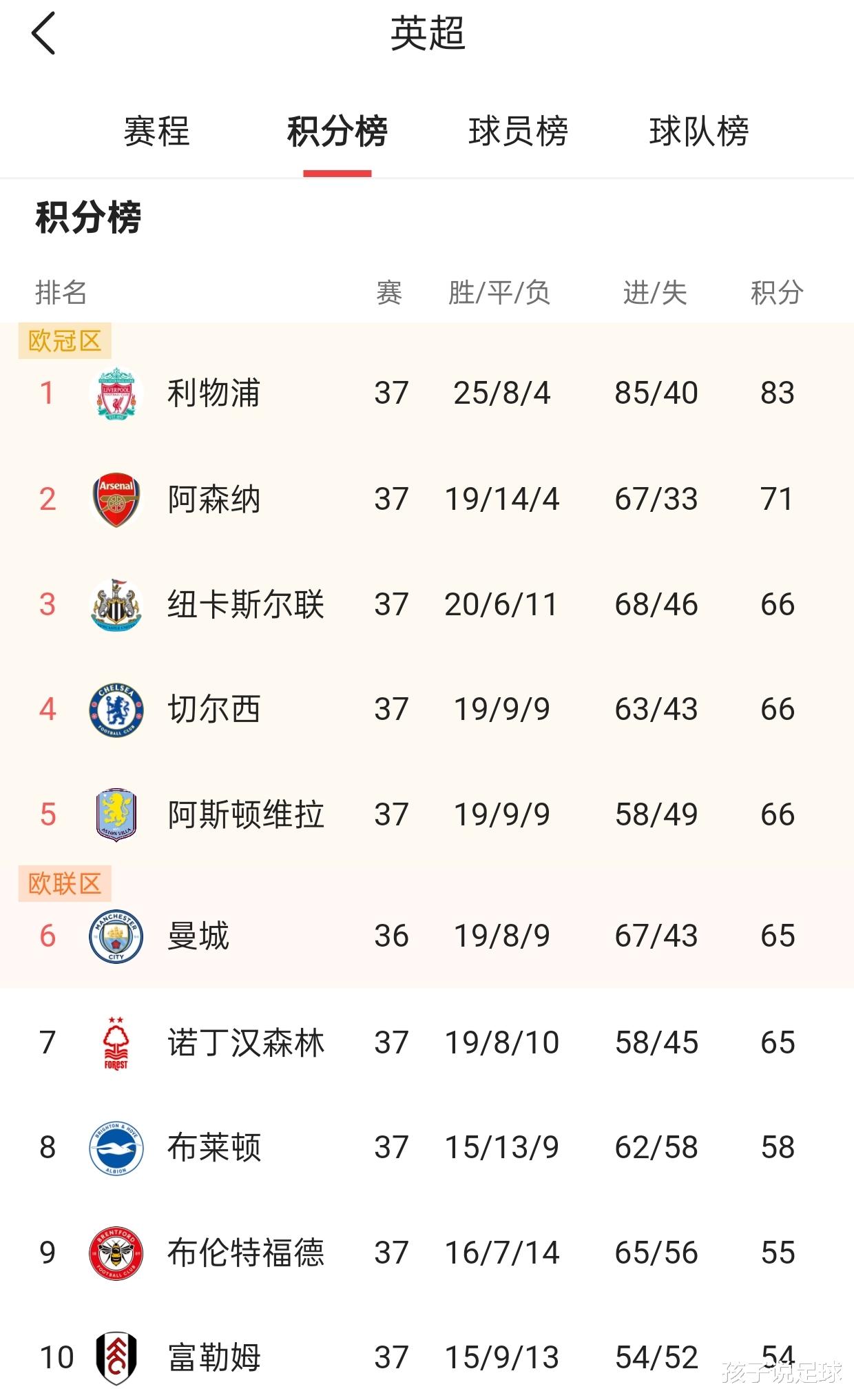 阿森纳凭借赖斯的关键进球1-0战胜纽卡斯尔联,提前锁定下赛季欧冠资格 ,枪手球迷可以提前准备欧冠赛程表了。但在阿森纳身后,纽卡斯尔联、切尔西、阿斯顿维拉和曼城之间的争夺进入白热化,分差极小,一场比赛的胜负就能改变排名。