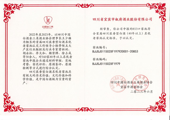 老窖池:俗话说“窖龄老,酒才好”,不同年份的窖池,酿出来的酒也不同。叙府现有翠屏山产区和李庄产区两大原酒生产基地,拥有古窖池群及优质窖池5500余口,其中有853口老窖池成功获得【首届四川浓香型白酒名优老窖池】认定,为“经典白盖”过硬的品质奠定了基础。