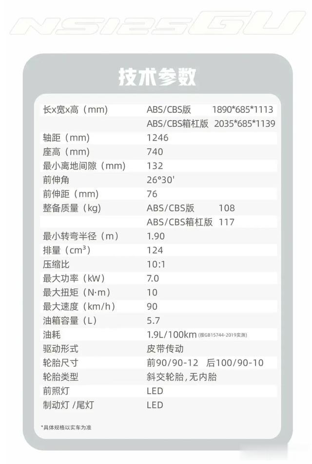四个版本主要有什么区别呢,顾名思义就能猜到主要是有没有配备ABS的区别,CBS版配备CBS前后联动刹车,而ABS版就配备单前ABS防抱死刹车。为什么只有单前ABS,因为此车依旧是采用前碟后鼓的刹车配置。而箱杠版也一样,就是是否有配备原厂尾箱和护杠,带了护杠尾箱整备质量也相对会比较重,去到117kg,而无尾箱护杠就只有108kg。