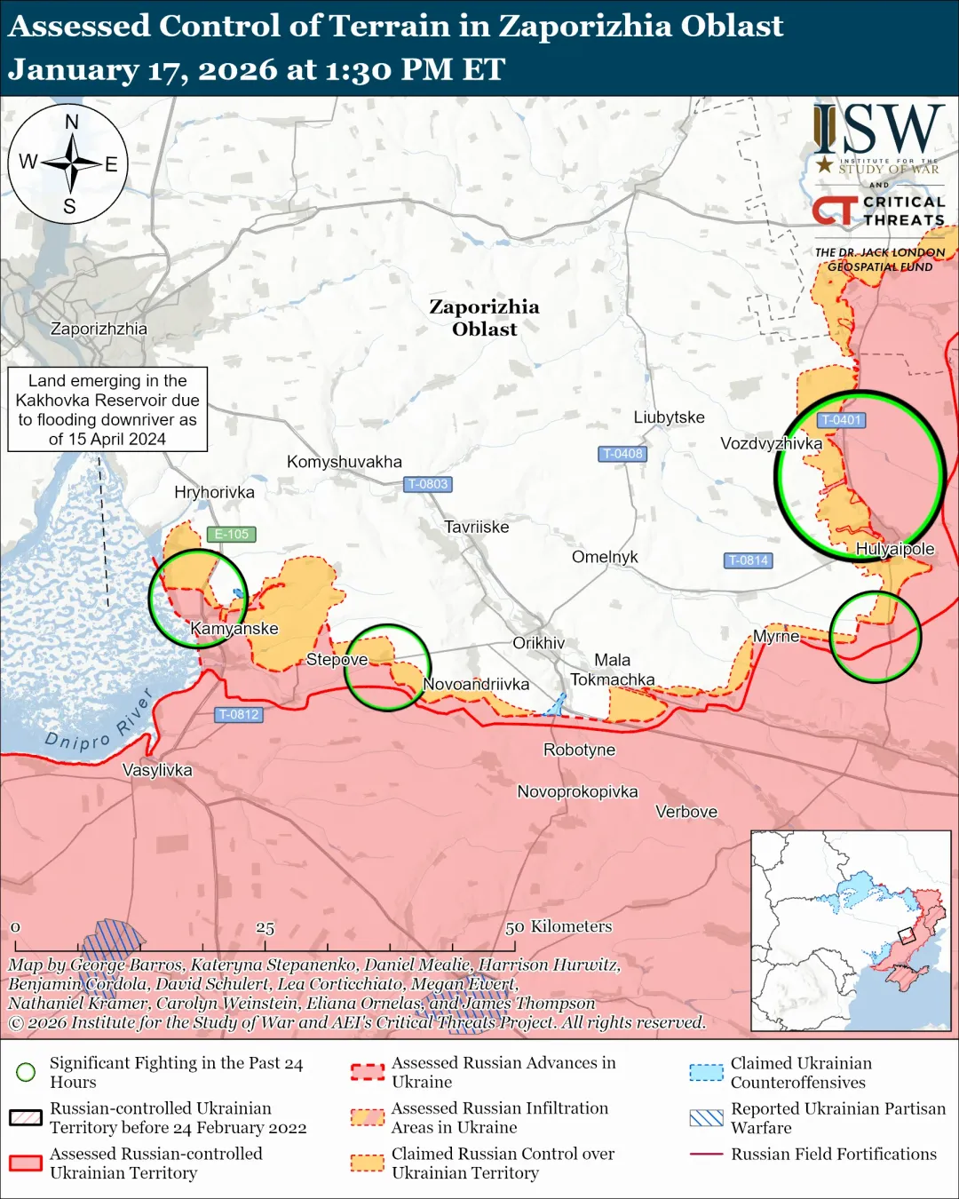根据美国战争研究所1月17日发布的最新情报,主要有以下关键信息: