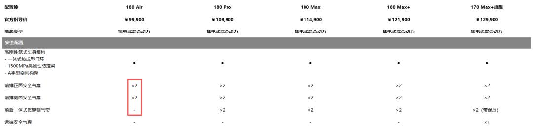 N6的权益价来到了9.19万元,看起来比秦L更便宜,但权益期过后的9.99万元门槛还是会更高一些,且这里没有算上秦L那边的终端优惠情况。入门版180Air车型,气囊数有阉割,而且不仅缺失后排出风口、驻车雷达、倒车影像等基础实用配置,连无钥匙进入、天窗都被完全取消,座椅采用织物材质且主副驾仅支持手动调节,说是能开的水准也不为过吧。官方看似拉低了购车门槛,实则将真正有配置需求的用户逼向10.19万的中高配,这种案例比较常见,一些车企总爱这么玩,有的甚至连低配都买不到。