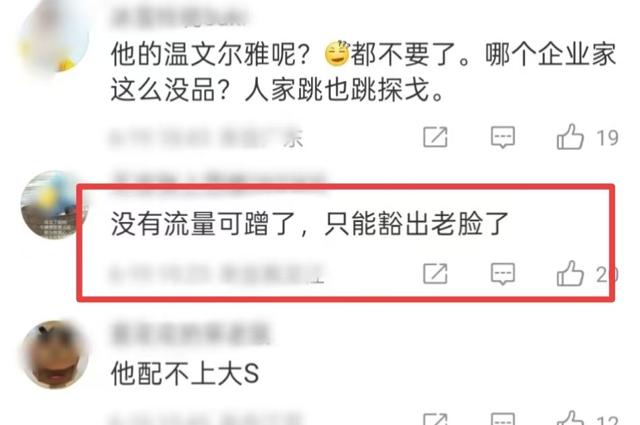 大家说他没有流量可以蹭了,只能豁出老脸了。还有人表示看到他的脸,就替大S感到不值。
