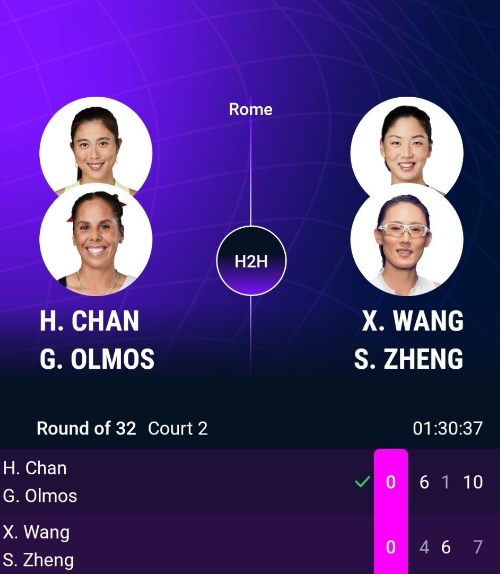 北京时间5月10日,WTA1000罗马站双打赛场,中国金花组合王欣瑜/郑赛赛对阵詹皓晴/奥尔莫斯。最终,王欣瑜/郑赛赛以4-6、6-1、7-10惜败詹皓晴/奥尔莫斯的跨国组合,止步首轮。尽管中国组合在次盘强势反弹,但决胜盘抢十局中连续错失赛点,最终遗憾出局。