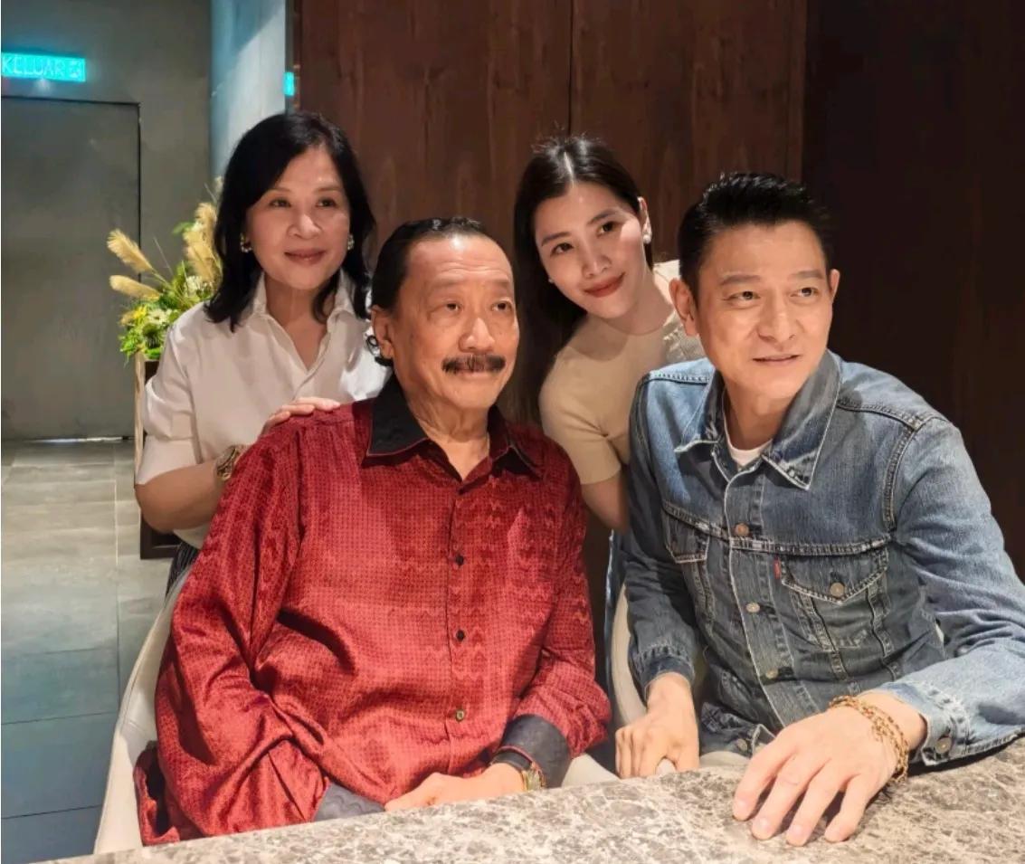 这场引发热议的聚餐选在吉隆坡顶级私人餐厅,主厨曾任职米其林三星,人均消费超 3000 元,整个餐厅仅设 13 席。照片中,刘德华身着蓝色牛仔外套,头发梳得一丝不苟,与 37 岁的小姨子陈雪玲合影时,双手规矩地平放在桌面,腰板挺直如小学生见班主任。这种 “豪门女婿式拘谨”,与他在银幕上的霸气形象形成鲜明对比。