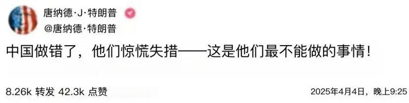 但特朗普却强行理解为:“中国慌了,做了最不能做的事情!”