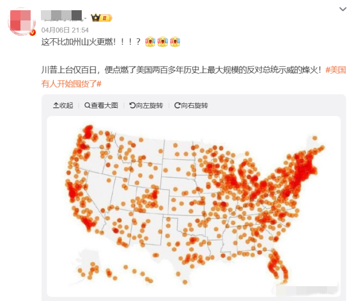 当地时间4月5日,全美就爆发了超1200起的游行示威,参与者数量超过了50万。