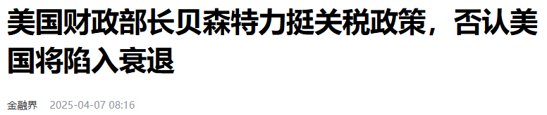 美财长贝森特虽然为特朗普的关税政策打辩护,但坊间传闻,制订对等关税时没人征求他的意见,他本人也想辞职跑路。