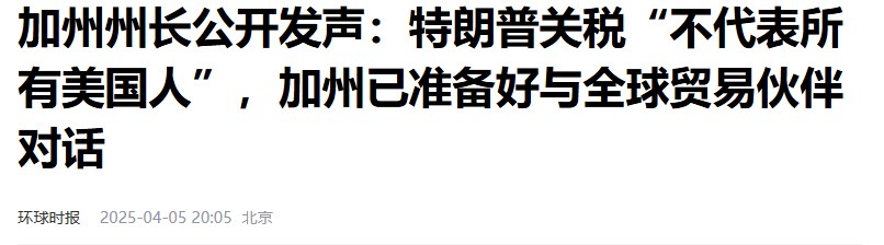 加州州长纽森已经感到后怕,表示美洲和特朗普不同,准备好与全球贸易伙伴进行对话。