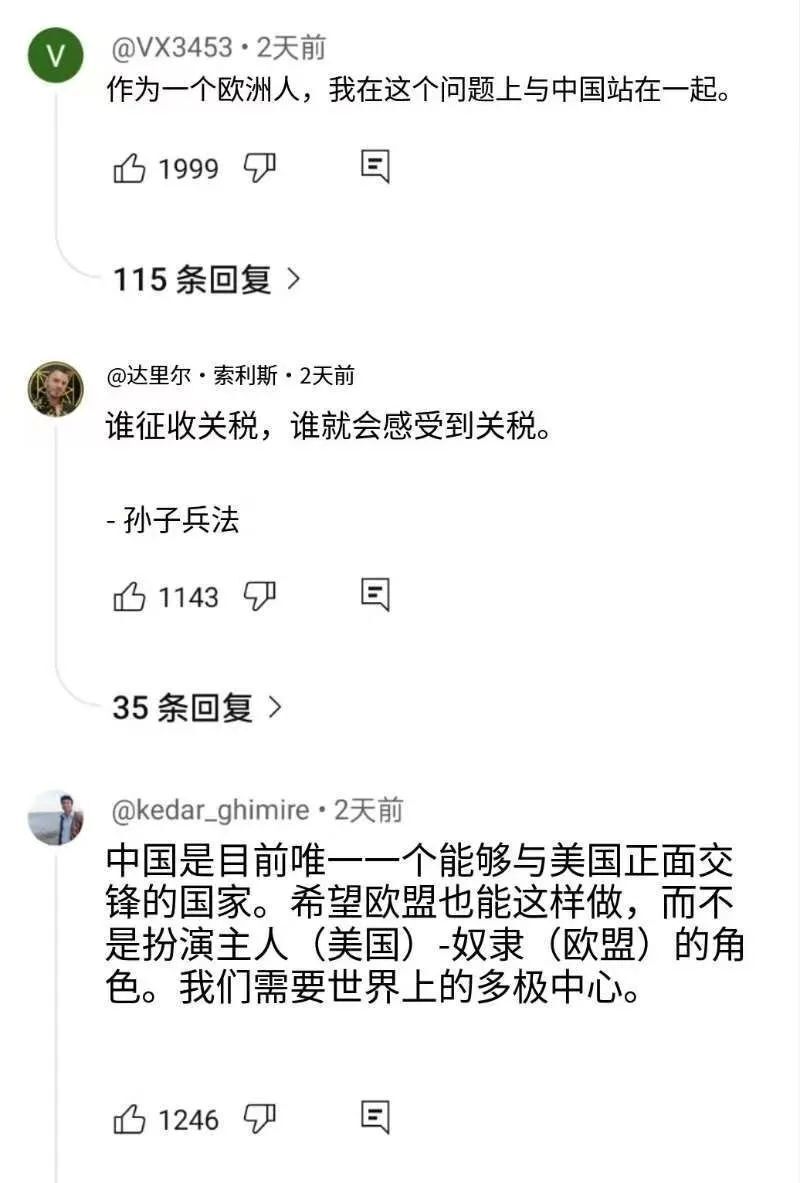 连外国网友都在称赞中国干得漂亮,希望欧盟也赶紧跟上,别整天跪舔特朗普。