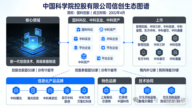 中国科学院控股有限公司(简称“国科控股”),2002年4月注册成立,代表中国科学院统一行使出资人权利、承担资产保值增值责任,核心聚焦新一代信息技术、高端装备制造等领域,构建了特色鲜明的“国科系”产业生态。旗下核心子公司包括国科科仪、中科实业、中科资产等平台型企业,控股参股企业超50家,分布于11个省市。