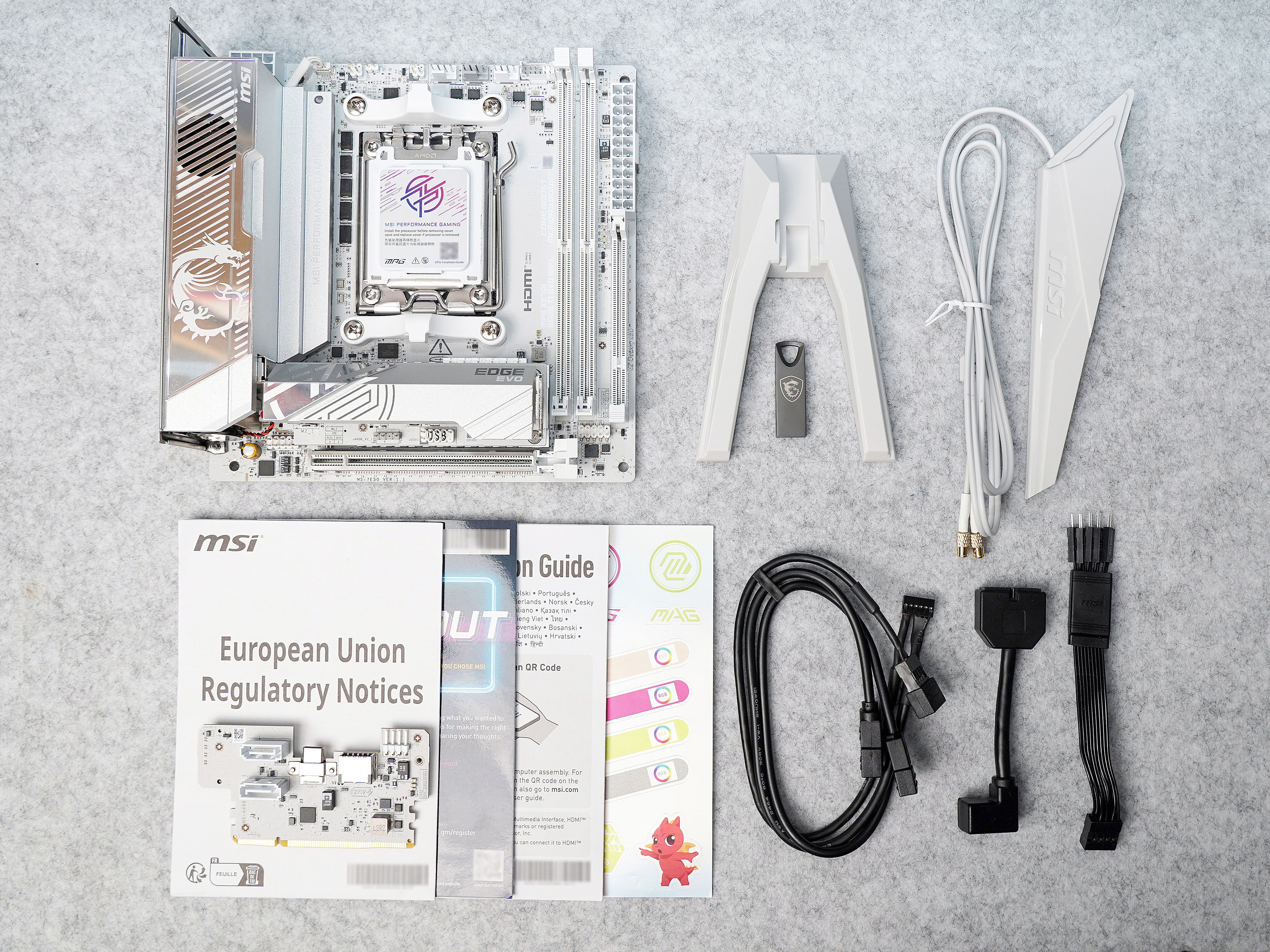 ▼主板采用了全白设计,甚至供电接口,内存卡槽等统统都是白色。供电和SSD散热部分覆盖有反光的镜面材质,丰富了层次感。PCB为12层设计,加强了使用中的稳定性和寿命。