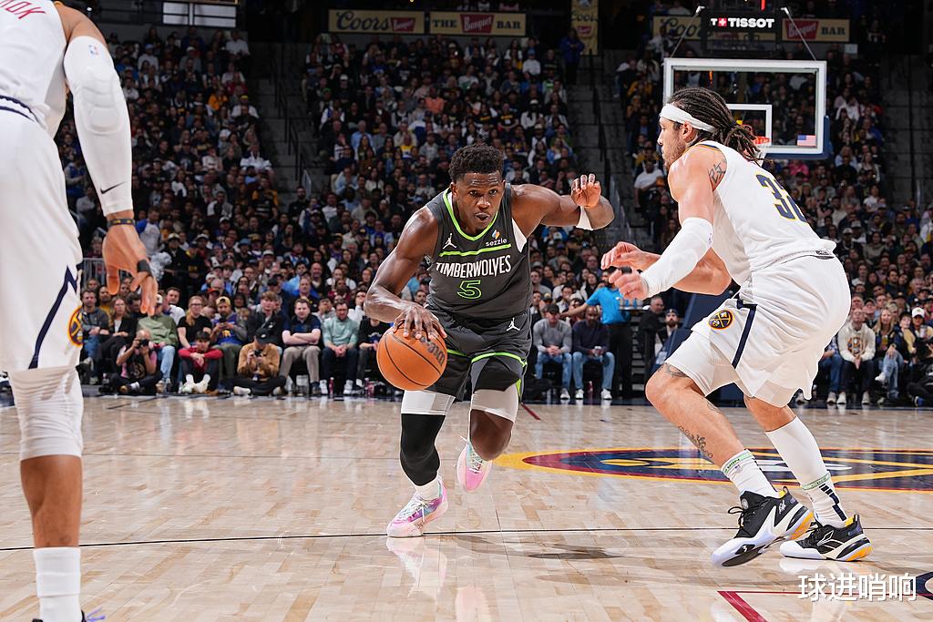 尽管穆雷与波特缺阵,掘金队还是在约基奇带领下早早建立领先优势,森林狼则多点开花咬住比分,比赛一直鏖战两个加时。