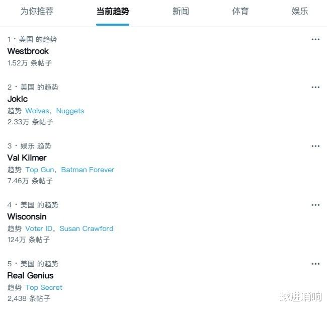 由于表现过于离谱,威少也第一时间冲上美国热搜。