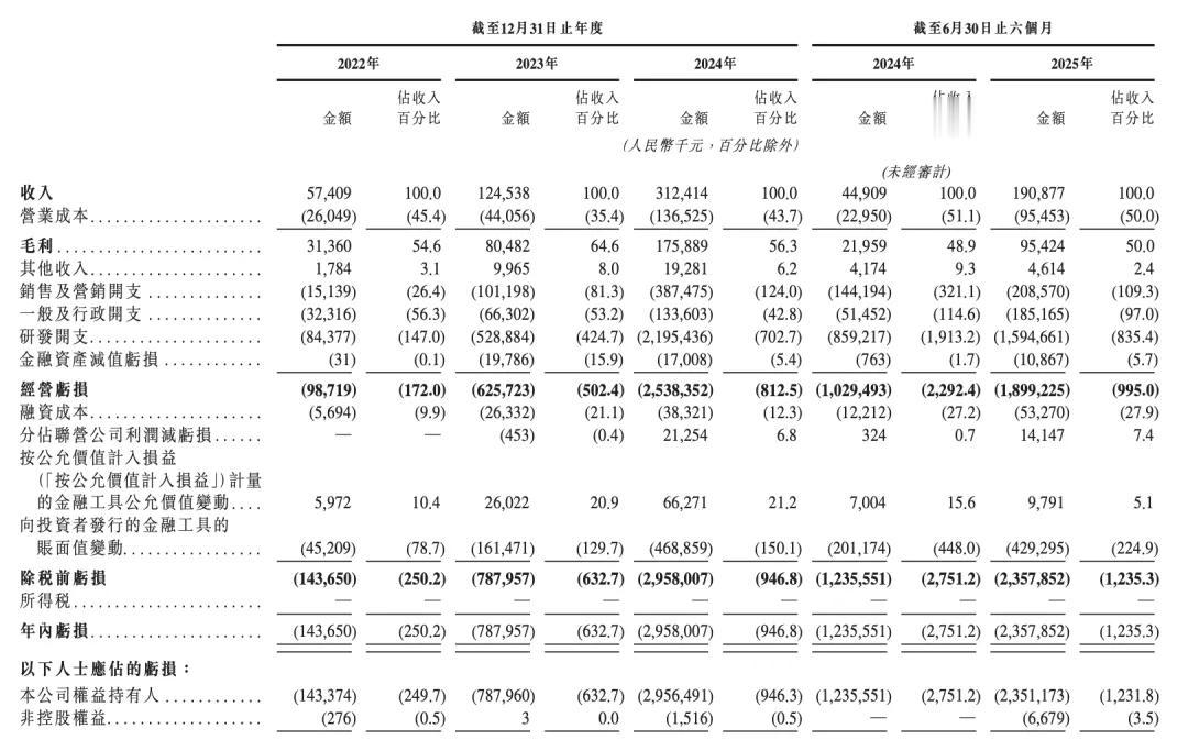 2022 年至 2025 年上半年,收入分别为 5740 万、1.25 亿、3.12 亿、1.91 亿。