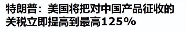 面对中国的强硬反击,4月10日,特朗普再次下令,对中国商品征收的关税加到125%,并且是立刻生效。
