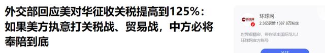 原文刊登于环球网---2025.04.10:《外交部回应美对华征收关税提高到125%:如果美方执意打关税战、贸易战,中方必将奉陪到底》