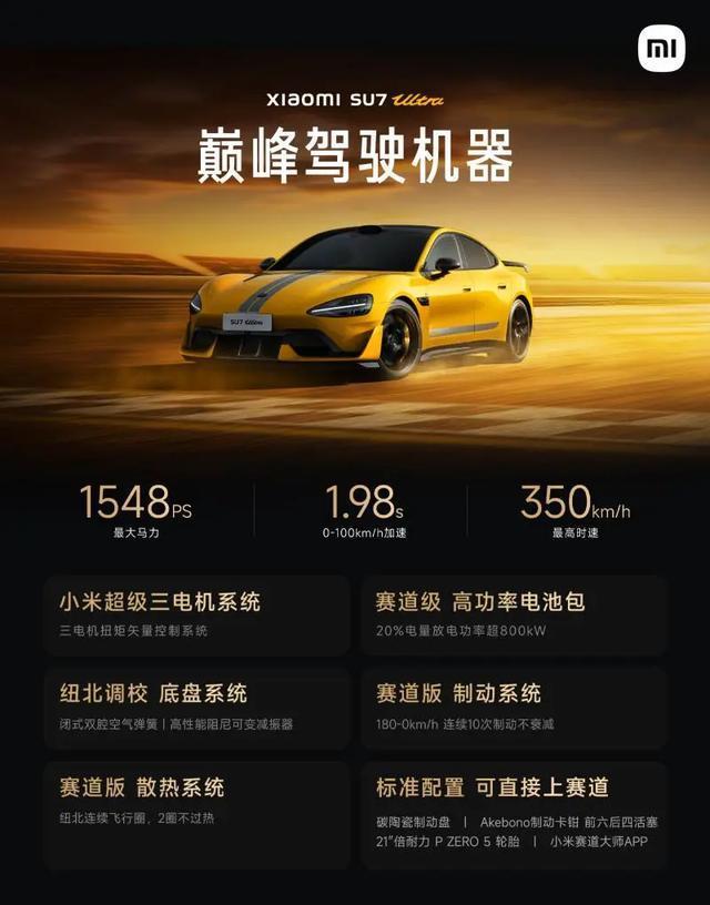 再看小米SU7Ultra,它的技术可是一大亮点。它搭载的高性能电机,能让车辆在起步的时候就像离弦之箭一样冲出去。有网友评论说,踩下油门的那一刻,感觉自己像是电影里的超级特工,随时准备来一场风驰电掣的追逐。而且它的电池技术也很先进,续航里程很长。这对于日常使用和长途旅行来说,都是非常实用的一点。就像一个靠谱的伙伴,无论何时都不会掉链子。