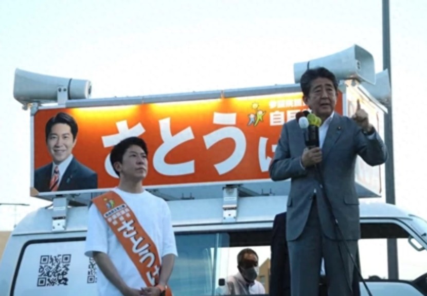 2022年7月8日,已经卸任首相两年的安倍晋三出现在奈良城,准备在那里发表振奋人心的演说为佐藤启助选。
