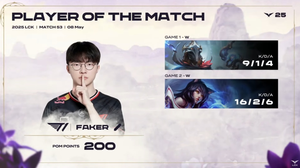 Gumayusi对线“被迫”完成对伊泽瑞尔的单杀,以前一直都被轮换,个人状态也影响很大,但最近几场打下来,他确实已经找到了一丝以前的感觉。而辅助Keria则是拿到职业生涯5000次助攻里程碑,助攻排名LCK第四(排名第一是Faker、第二是李汉子、第三是小花生)!而Faker更是回到巅峰,拿到职业生涯第二次五杀,第一次用乐芙兰这一次用狐狸,这就是名人堂英雄代言人啊!