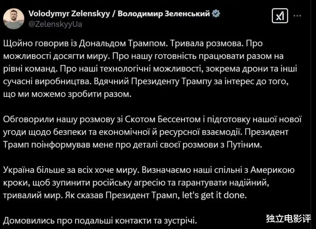 特朗普总统向我介绍了他与普京谈话的细节,乌克兰比任何人都更希望和平,我们正在与美国确定共同步骤,以制止俄罗斯的侵略并确保可靠、持久的和平。