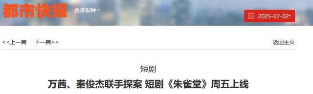 都市快报|万茜秦俊杰联手探案