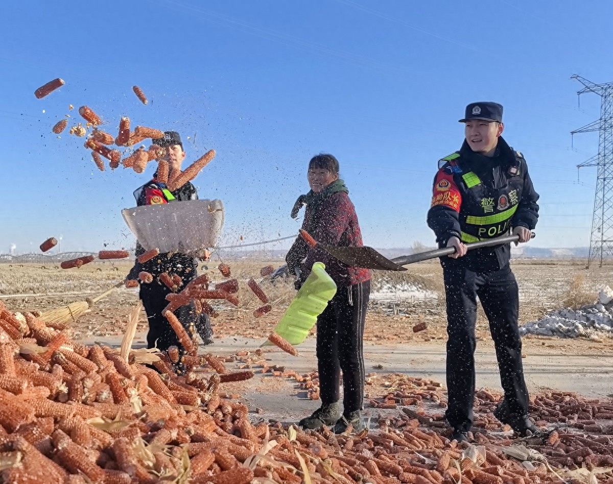 民警们走进农户院落,协助群众整理、归置晾晒的玉米作物,忙碌的身影穿梭在粮堆间,为农户减轻冬日劳作负担;劳作间隙,民警们又将印有铁路安全知识、反诈提示的宣传品送到农户手中,结合冬季铁路安全风险点,面对面讲解铁路线路安全、电信诈骗防范等内容,把法治服务送到群众“家门口”。