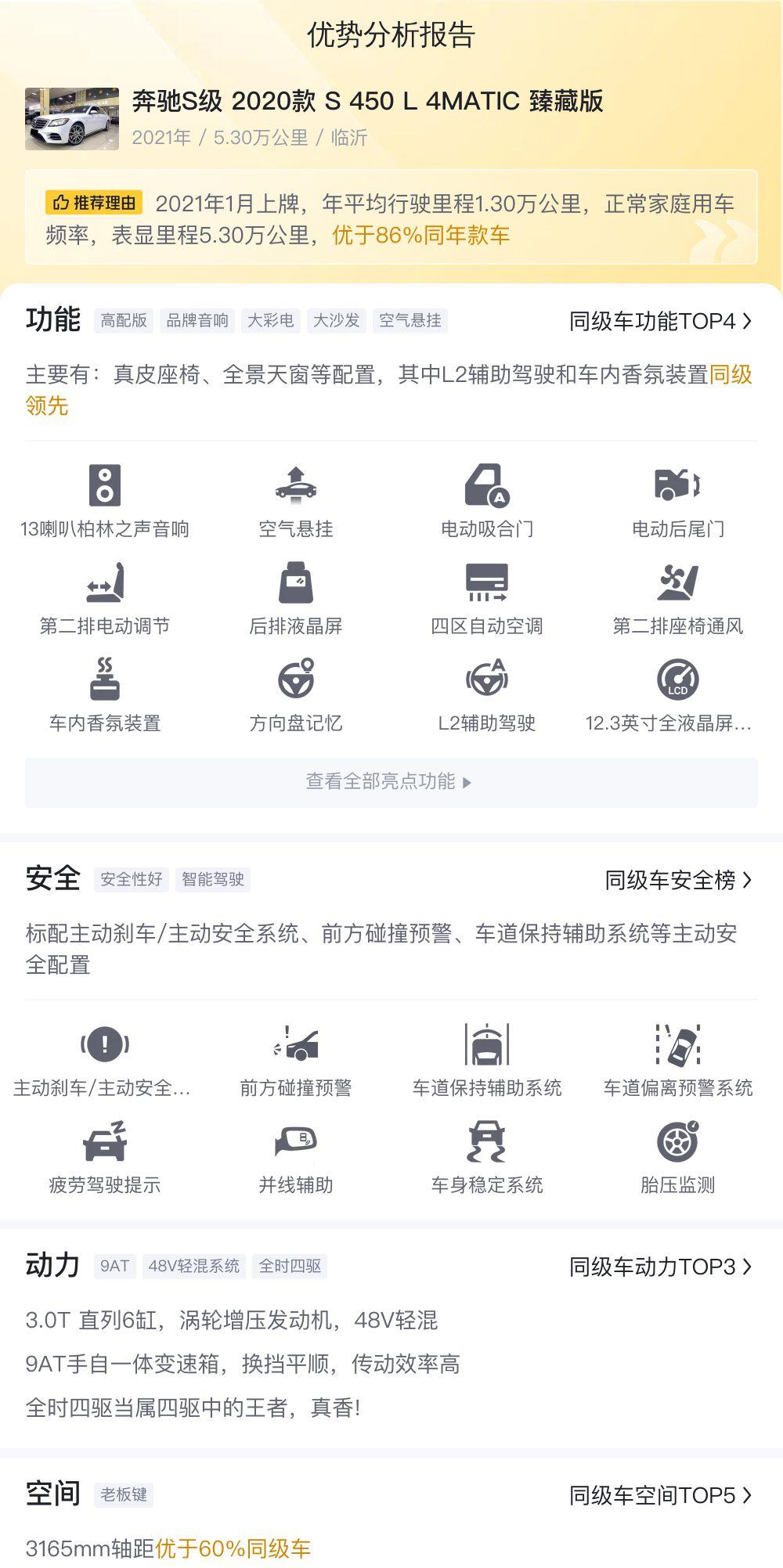 最后,我们再来回顾一下这辆二手奔驰S级的关键信息:2020款 S 450 L 4MATIC 臻藏版,5.3万公里,一次过户,48.8万售价。这些数据只是参考,具体的车况还需要实际考察。希望大家在购车过程中保持理性,做出最适合自己的选择。 Remember,买车不是为了面子,而是为了更好地服务于生活。