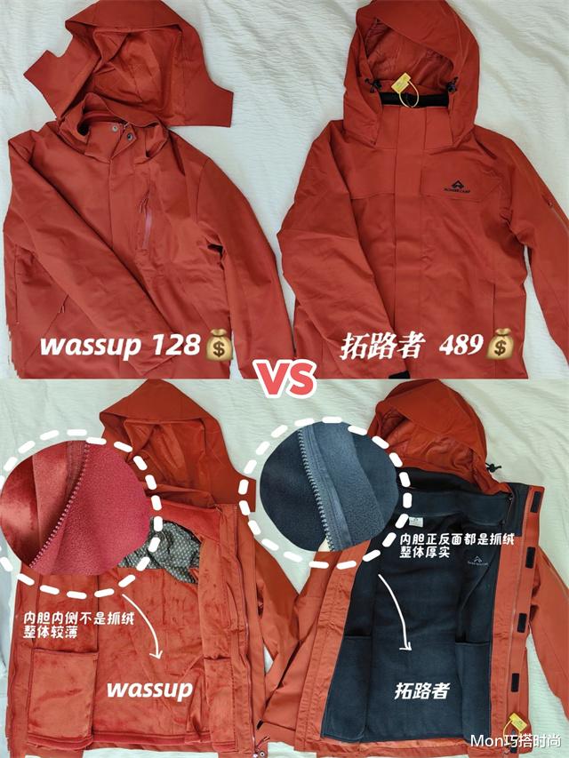而这功能性的优劣主要取决于“面料”。便宜的冲锋衣内胆偏薄、穿上容易起静电,保暖性也略差。再看贵价的拓路者冲锋衣,内胆抓绒厚实,保暖又挺括。