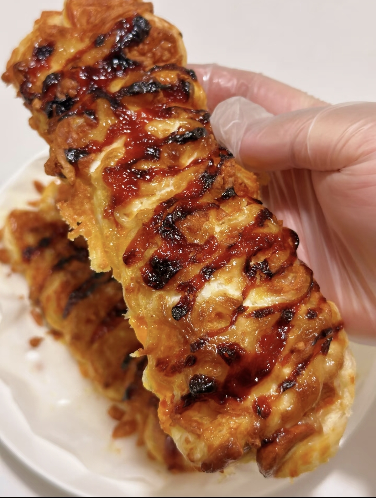 第一次品尝这道手抓饼火腿酥,是在亲戚家的午后茶歇时。当那金黄油亮的酥饼端上桌,轻轻一咬,外皮酥得簌簌掉渣,内里却是火腿的咸香与芝士的浓郁交织,拉丝的芝士缠绕舌尖,咸香酥脆的口感瞬间俘获了味蕾,连平日挑剔的小侄子都抢着吃了两块。那一刻我就认定,这绝对是懒人美食界的“天花板”,比面包店卖的还要诱人。如今,这道美食已成为我家餐桌的常客,无论是早餐还是下午茶,都能带来满满的幸福感。