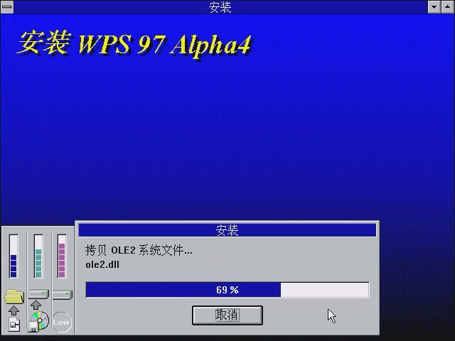 很奇怪,我这包写的是WPS 97 Alpha 3版的安装包,然后配了个Alpha 4版的补丁包,但是安装时直接写的是Alpah 4,有点奇怪。