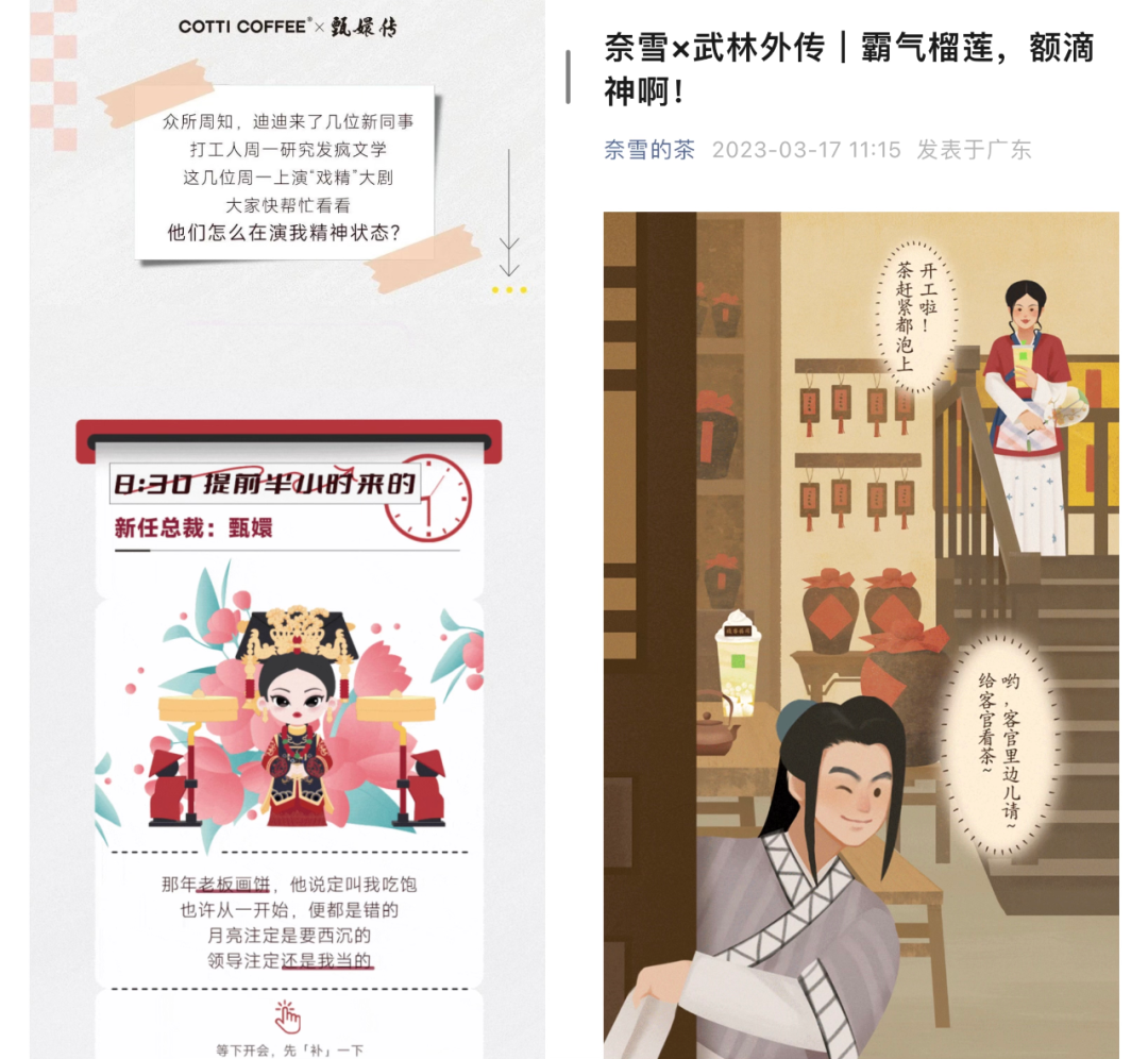 比如《武林外传》《甄嬛传》等“国民级”IP也是今年被茶饮咖啡品牌看中的合作伙伴。这类IP家喻户晓,影响力已延续十年以上,往往伴随着一代甚至几代人的成长,几乎已经成为了一种文化符号。品牌与之合作,市场教育的成本很低,联名后的成功率有很高保证。
