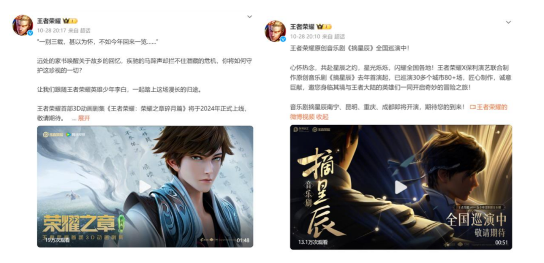 从游戏角度来说,这是保证其生命周期得以延伸的必要举措。而站在品牌角度来看,一方面是每个游戏品类都有忠实玩家,做矩阵IP能够覆盖到了人群体量就会更为庞大,对品牌提升曝光和声量有益。另一方面,王者荣耀大IP下的英雄认知度本就很高,拓展出更多类型游戏后,人物角色会有更多呈现空间,IP故事会更有份量。